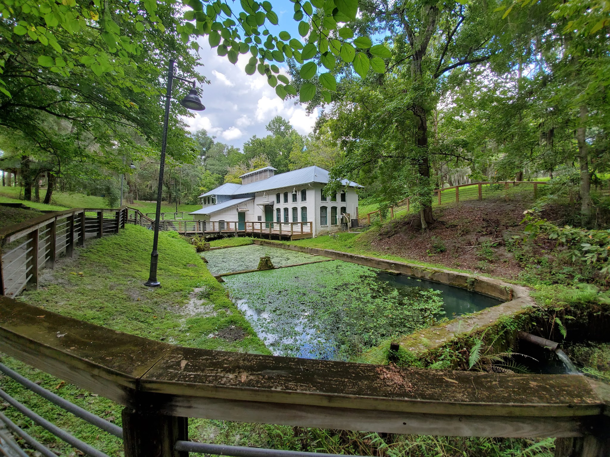 The park’s story is deeply intertwined with the founding of Gainesville itself. In 1854, the site was the location of a pivotal meeting where local citizens voted to establish Gainesville as the new county seat, replacing Newnansville. Over the years, the spring became the city’s primary water source, with the construction of brick reservoirs and waterworks in the 1890s. These structures, now restored and preserved, offer a glimpse into the engineering marvels of the past and are listed on the National Register of Historic Places. The waterworks building, though showing its age, remains a focal point for visitors interested in the region’s history and the development of municipal water systems in Florida.